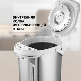 вращение на 360 градусов, индикатор уровня воды, индикация включения, съемная крышка, фильтр, Длительное кипячение, Поддержание постоянной температуры, Фильтр от накипи, блокировка включения без воды, блокировка крышки, индикация температуры, с двухслойным корпусом