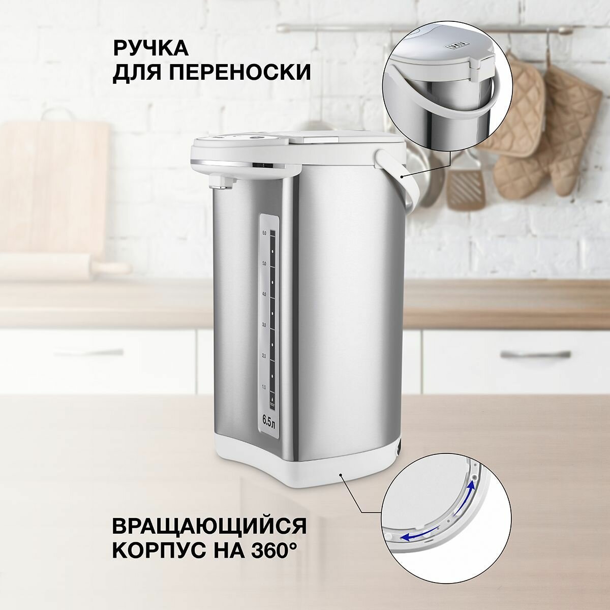 вращение на 360 градусов, индикатор уровня воды, индикация включения, съемная крышка, фильтр, Длительное кипячение, Поддержание постоянной температуры, Фильтр от накипи, блокировка включения без воды, блокировка крышки, индикация температуры, с двухслойным корпусом