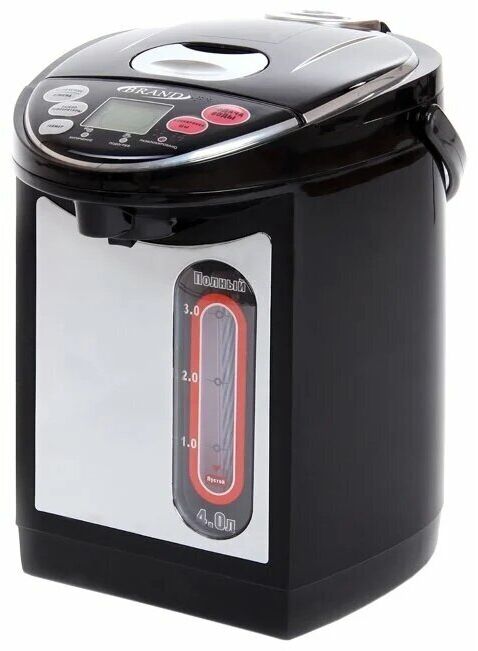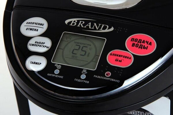 Термопот Brand 4404B имеет оригинальный дизайн. Кроме того, термопот, благодаря значительной (750 ватт) мощности имеет возможность быстро кипятить и нагревать все 4 литра своего объёма.