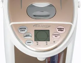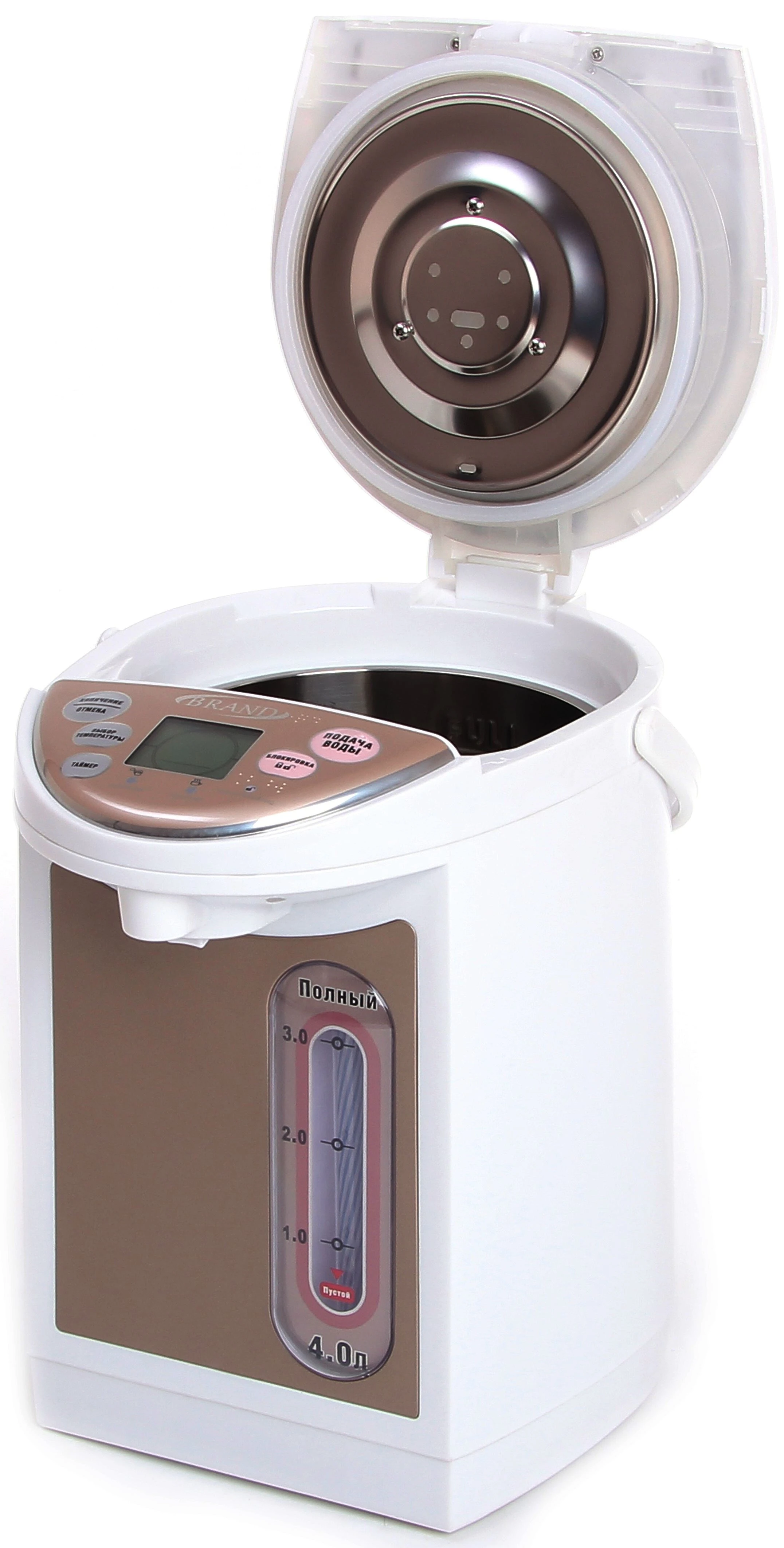 Термопот Brand 4404S имеет оригинальный дизайн. Кроме того, термопот, благодаря значительной (750 ватт) мощности имеет возможность быстро кипятить и нагревать все 4 литра своего объёма.
