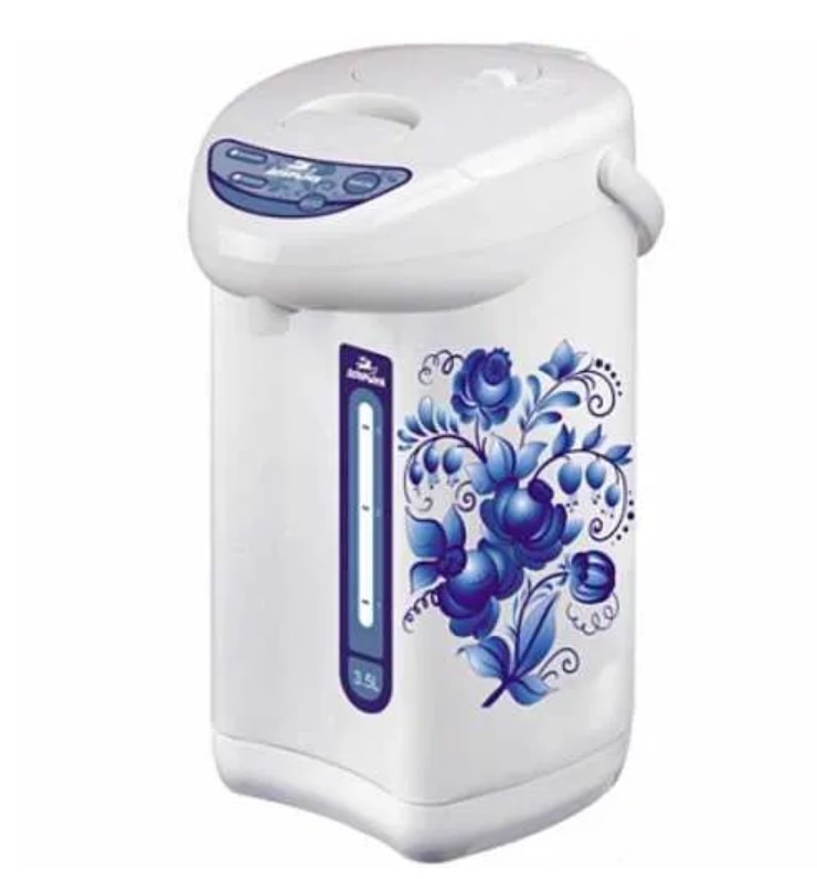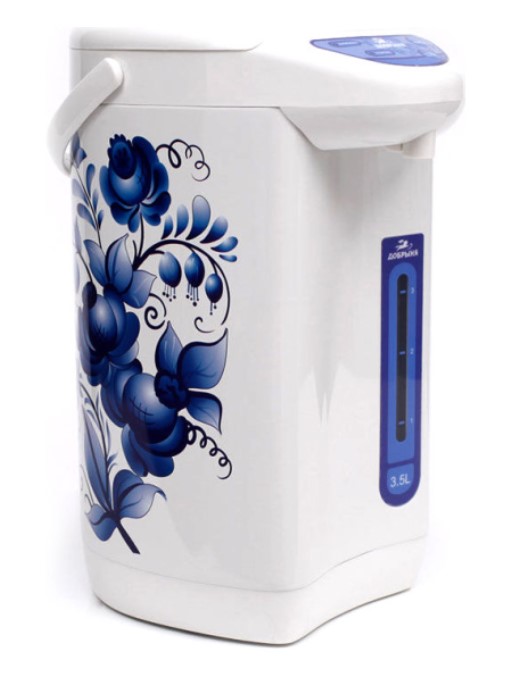 Термопот Добрыня DO-484 быстро нагревает воду до нужной температуры при выборе подходящего режима. Двойные стенки термопота исключают быстрое остывание горячей воды, а индикация уровня всегда поможет определить, сколько воды в термопоте. Удобная конструкция модели позволит переносить её по необходимости или наливать воду, не держа на весу чашку. Стильный дизайн, дополненный растительным орнаментом в стиле гжельской росписи, превратит термопот в настоящее украшение вашей кухни!