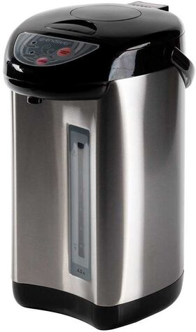 Описание Электрический термопот Altea-2035, черный/стальной, мощность 900 Вт, напряжение 220 В, 50 Гц, резервуар для воды из нержавеющей стали — 4 л, 3 режима подачи воды: автоматический, ручной и при касании чашки, удобная ручка, длина сетевого шнура 1,2 м, функция поддержания температуры 75-90 градусов