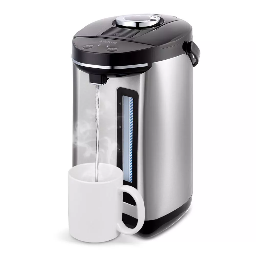 Двойные стенки термопота помогают сохранить тепло. Кипячение будет срабатывать реже и это поможет снизить потребление электроэнергии. Кроме того, вы можете использовать термопот длительное время вдали от места подключения к сети.