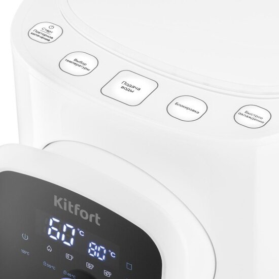 двойные стенки, дисплей, индикатор уровня воды, индикация включения, сенсорное управление, съемная крышка, Выбор температуры нагрева воды, блокировка крышки