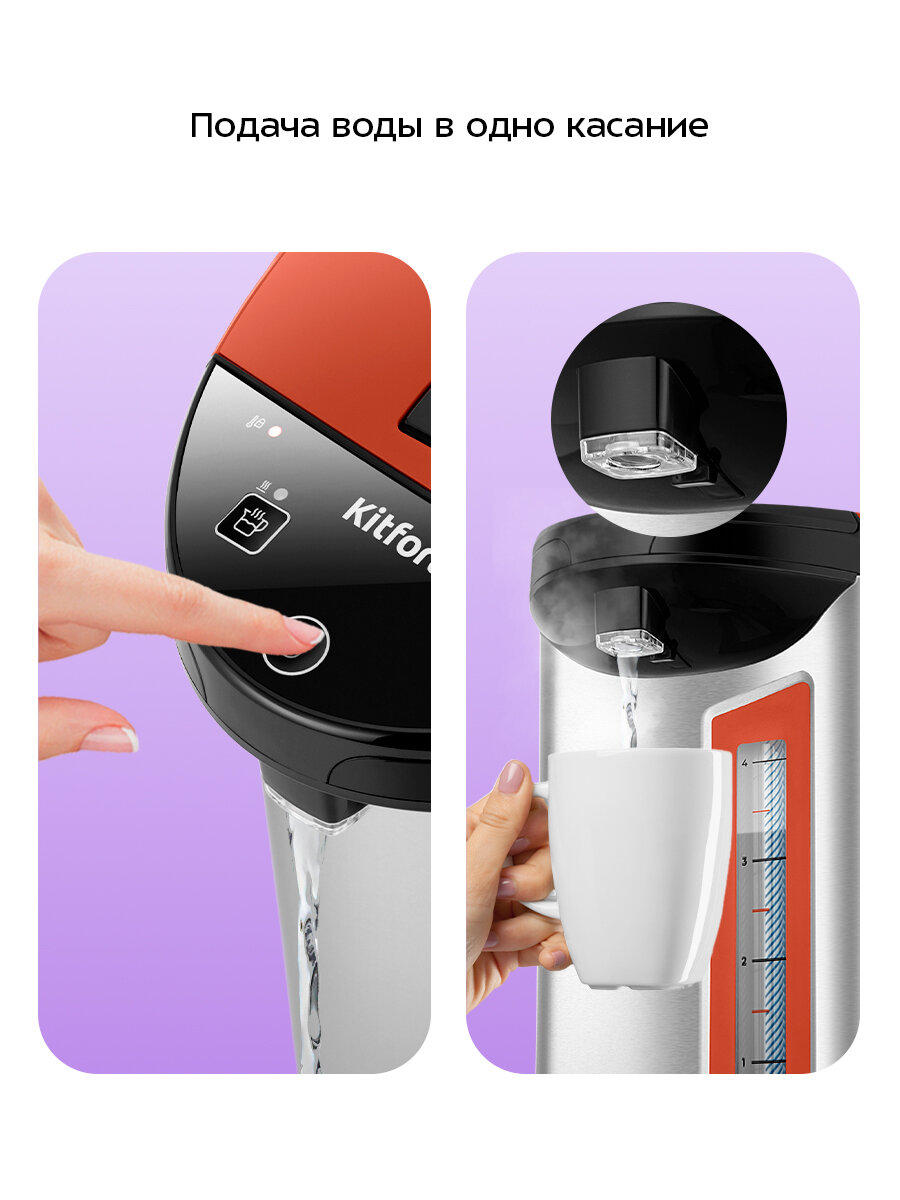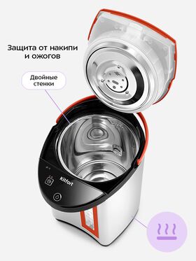 Скрытый ТЭН из нержавеющей стали в KT-2527 не контактирует с водой – благодаря этому образуется меньше накипи. А двойные стенки сохраняют тепло, не давая корпусу нагреваться!