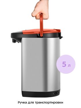 Ёмкость термопота составляет 5 литров - этого точно хватит на множество кружек чая! А чтобы его было легче переносить даже наполненным - в верхней части предусмотрена специальная ручка для переноски.