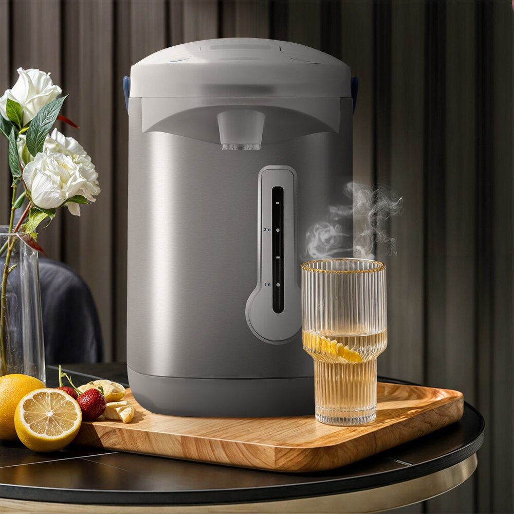 Корпус термопота состоит из пластика и нержавеющей стали, а резервуар — из нержавеющей стали. Внутренняя часть крышки также сделана из нержавеющей стали, поэтому вода не соприкасается с пластиковыми частями устройства.