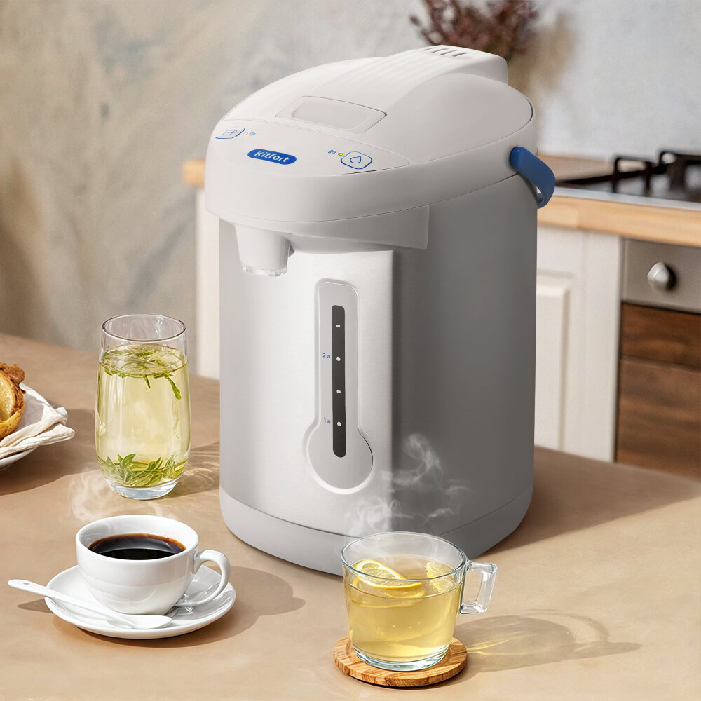 Термопот КТ-2532 служит для кипячения и поддержания температуры воды с помощью периодического включения и отключения нагрева.