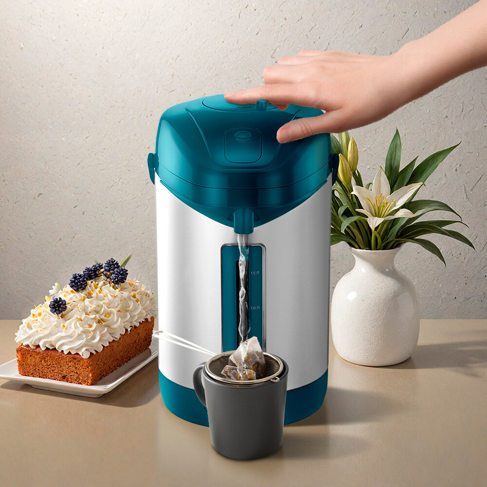 Благодаря двойным стенкам резервуара вода в термопоте будет остывать достаточно медленно. Корпус термопота состоит из пластика, а резервуар и внутренняя часть крышки из нержавеющей стали.