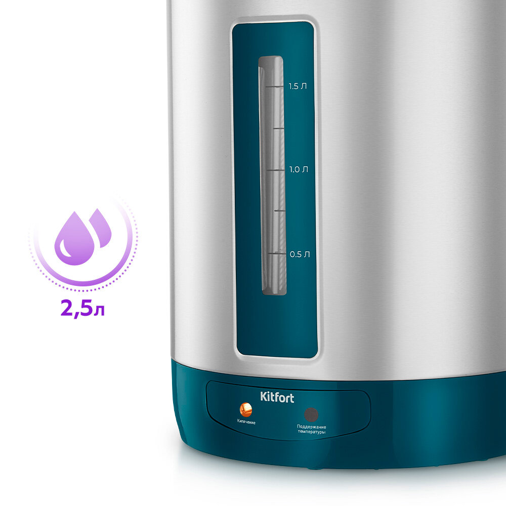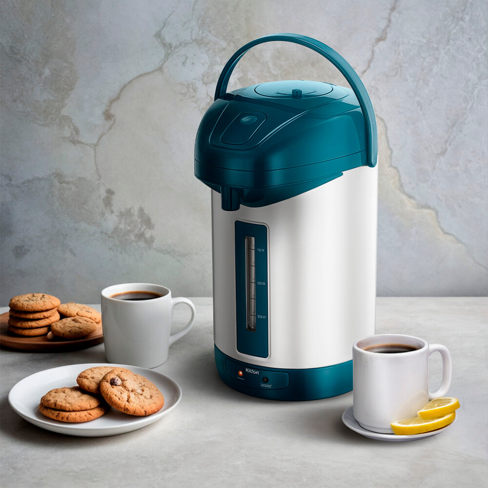 Термопот КТ-2534 предназначен для кипячения и поддержания горячей воды благодаря периодическому включению и отключению нагрева. В отличие от обычного чайника, он поддерживает температуру, обеспечивая горячую воду в любой момент.