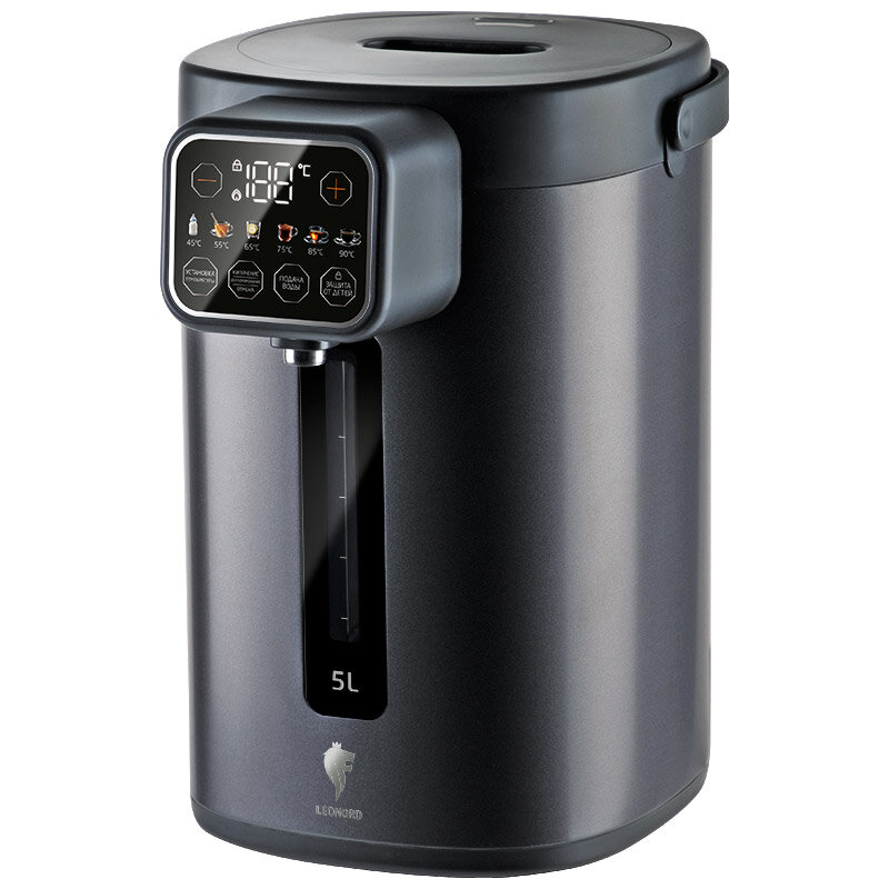 Наслаждайтесь идеально чистой водой с функцией дехлорирования и точным контролем температуры от 45 до 100℃. Мощность 1600 Вт и внутренняя колба из нержавеющей стали 304 обеспечивают мгновенное кипячение и длительное сохранение тепла без посторонних привкусов. LED дисплей отображает текущую температуру, а автоматическая подача одним нажатием кнопки делает использование невероятно удобным. Защита от детей и эргономичная ручка добавляют безопасности и комфорта в повседневной жизни. Пятилитровый объём идеален для семьи или офиса, а функция поддержания температуры избавит от необходимости повторного кипячения. Leonord — это безупречное качество и стильный дизайн для тех, кто ценит удобство и заботится о здоровье.