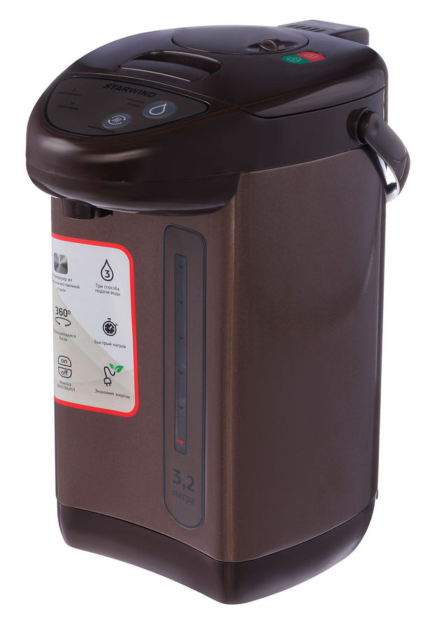 Три способа подачи воды: 1- нажатием на кнопку 2- нажатием чашкой на носик 3- ручная помпа для работы без сети Внутренняя колба из стали 304 – долговечная, не окисляется со временем. Внешний переключатель вкл/выкл – не нужно вынимать из розетки.