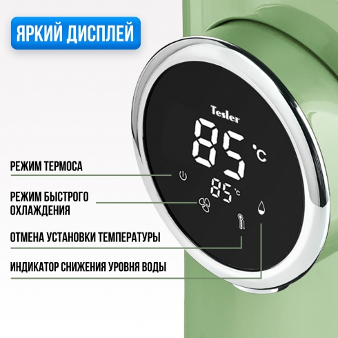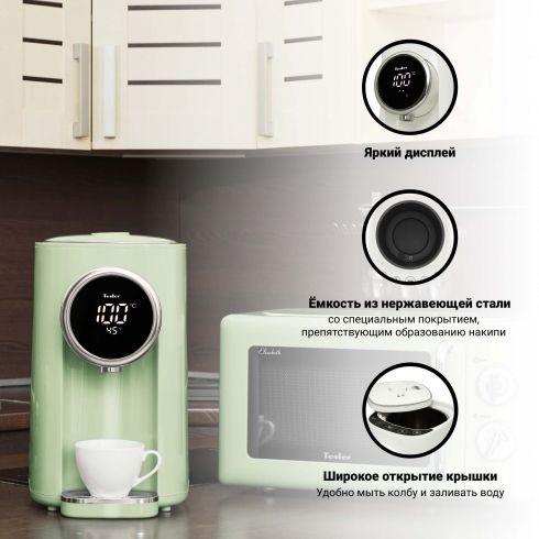 Термопот Tesler Margherita TP-5060 не только кипятит воду, но и нагревает её до одного из шести предустановленных значений (95, 85, 75, 65, 55, 45 градусов). Выбранная температура поддерживается постоянно.