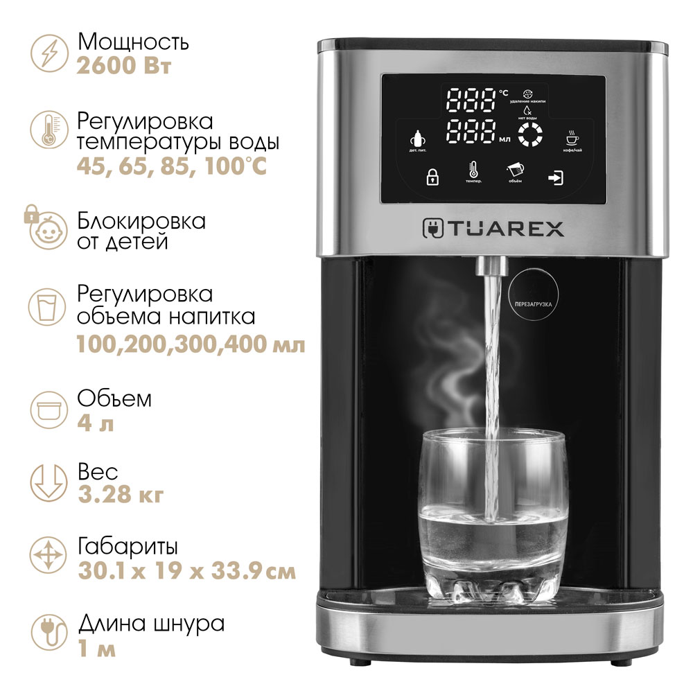 Электрический термопот Tuarex TK-8100 - это идеальное решение для тех, кто ценит удобство и функциональность в быту. Благодаря мощности 2600 Вт и емкости резервуара для воды в 4 литра вы всегда сможете быстро получить нужное количество горячей воды.