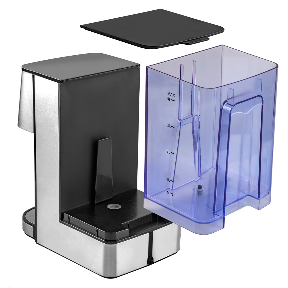 Сенсорная панель, LCD-дисплей, Функция блокировки, Регулировка объёма порции: непрерывный поток | 100 мл | 200 мл | 300 мл | 400 мл, Регулировка температуры воды: комнатная | 45°С | 65°С | 85°С | 100°С, Предустановленные режимы: • детское питание: 40°С | 55°С | 70°С и 90 мл | 120 мл | 150 мл | 180 мл | 240 мл • чай / кофе: 92°С и 150 мл | 300 мл, Датчик наличия воды, Автоотключение при отсутствии воды, Функция очистки от накипи, Автоотключение при перегреве, Съемный резервуар для воды, Шкала уровня воды