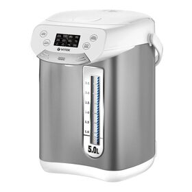 Термопот VITEK VT-1185 быстро вскипятит большой объем воды (до 5 л) и сохранит её горячей в течение дня, благодаря функции поддержания температуры. Корпус прибора изготовлен из нержавеющей стали с цветным покрытием, поэтому устройство не только будет служить долго, но гармонично впишется в любой интерьер кухни. Максимальная мощность термопота — 890 Вт. Вы можете выбрать необходимый режим, например, режим энергосбережения, или температуры нагрева 45°С, 55°С, 65°С, 75°С, 85°С, 95°С, 100°С. Выбранная, а затем и реальная температура воды внутри устройства будет отражаться на удобном LED-дисплее. Следить за уровнем воды позволяет удобная шкала, расположенная на корпусе прибора. Чтобы налить воду в чашку или повторно вскипятить, необходимо просто нажать на специальную кнопку. Для максимально безопасного использования в модели предусмотрена функция блокировки, горячая вода не польется случайно. В термопоте VITEK VT-1185 три степени безопасности: защита от перегрева, автоматическое выключение при закипании и отсутствии воды.