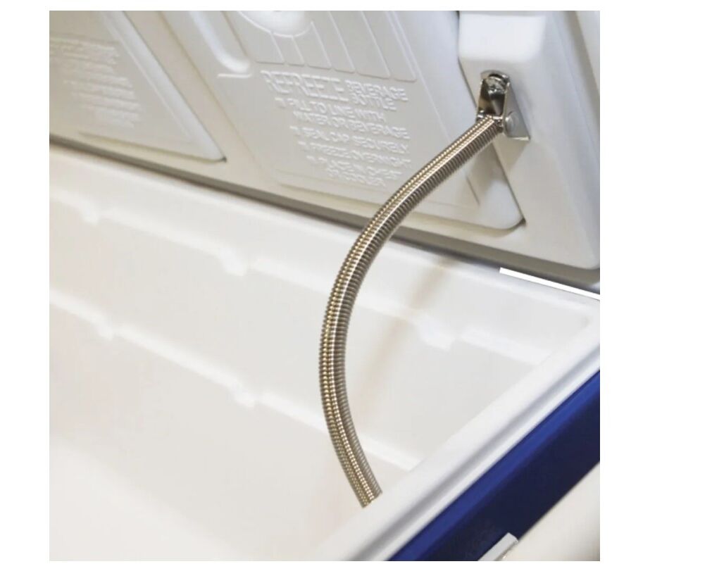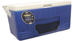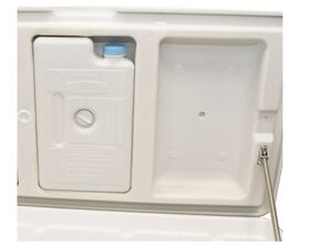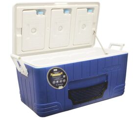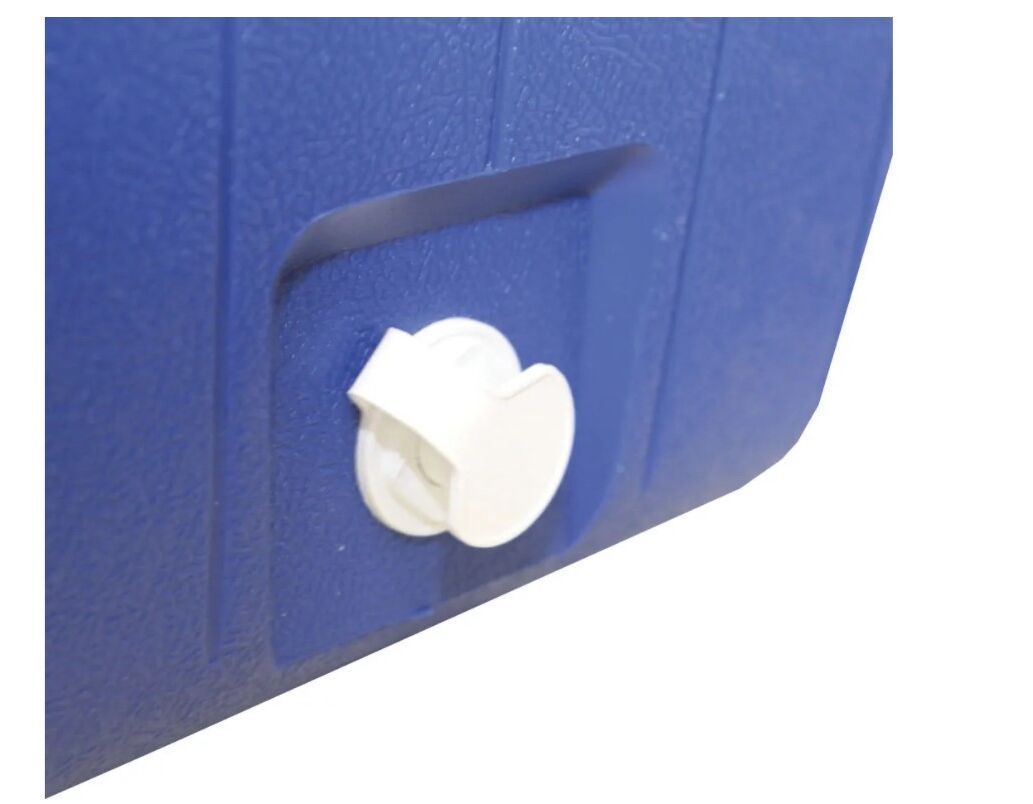 Корпус и крышка контейнера заполнены пенополиуретаном - изоляционным материалом, обеспечивающим полную термоизоляцию. Контейнеры выдерживают большую нагрузку (можно сидеть) и позволяют поддерживать температуру до 72-х часов. В крышку встроены 3 аккумулятора холода (аккумуляторы холода без наполнения (пустые)). Контейнеры оборудованы системой влагоотведения. Внизу корпуса есть клапан для слива конденсата. Сбоку у контейнеров находится пластиковый сетчатый карман. Как работает изотермический контейнер: Внутри изотермического контейнера находится емкость, в которую кладут продукты и напитки. Между внешним корпусом и емкостью проложен слой изоляции, который помогает поддерживать нужную температуру. Дополнительно в изотермический контейнер кладут аккумуляторы холода предварительно замороженные в морозилке контейнеры со специальной жидкостью.