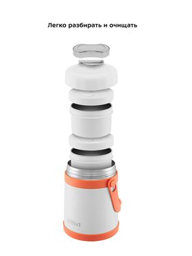 Контейнер состоит из двух частей: сам пластиковый контейнер и внутренняя чаша из нержавеющей стали, что позволяет лучше сохранять тепло и избежать контакта еды с пластиковыми частями.