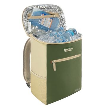 Рюкзак-холодильник «Турист» из прочной влагоотталкивающей ткани имеет одно большое герметичное отделение, термоизоляционный слой Biofoam, толщиной 6 мм и фольгированный теплоотражающий слой PEVA. Прочный материал легко моется и защищает рюкзак-холодильник от протекания. Дополнительно имеется внутренний карман в крышке рюкзака для аккумулятора холода и два боковых сетчатых кармана. Изоляционный слой 6 мм удерживает температуру внутри рюкзака до 48 часов.