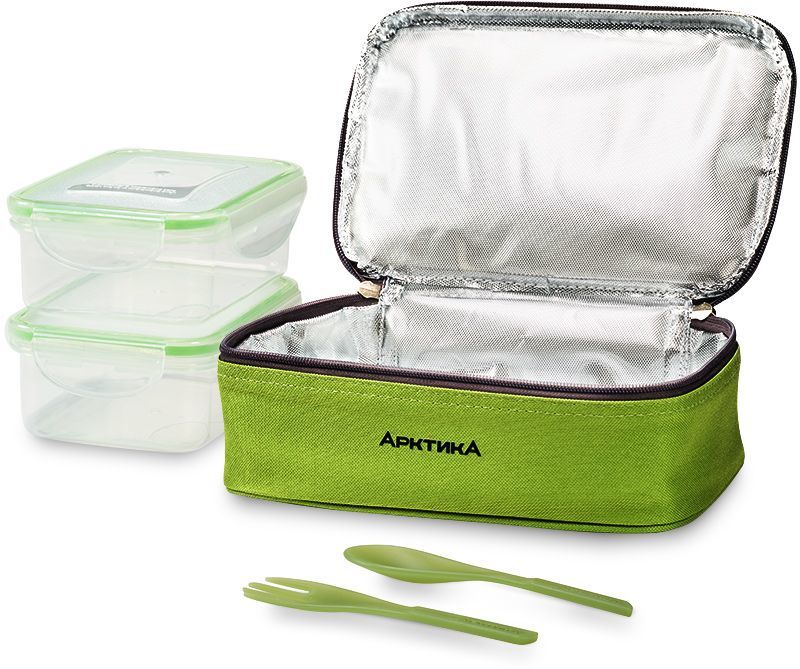 Ланч-сумка объемом 2л в комплекте с двумя контейнерами по 0,5л для горячих и холодных блюд. Контейнеры можно разогревать в микроволновой печи без крышки и мыть в посудомоечной машине. Вилка и ложка в комплекте.