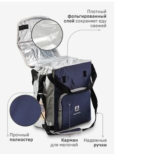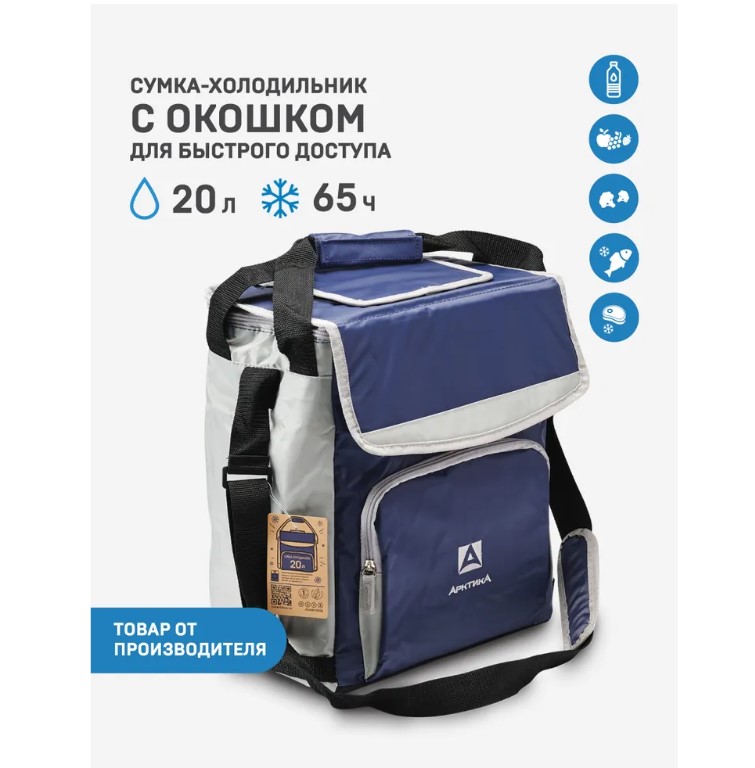 Вместительная сумка холодильник для пикника / автомобиля / путешествий/ отдыха на пляже с регулируемым ремнем, наружным карманом для чая, специй или документов. Выполнена из качественных проверенных безопасных материалов. Наша сумка холодильник с аккумуляторами холода удерживает холод до 65 часов. Фольгированный слой и термоизоляционная прослойка PEVA проверено сохранят мясо и овощи свежими, а напитки прохладными. Люк в верхней крышке на липучке позволит минимизировать лишние теплопотери. Для тех, кто любит отдых на природе в большой компании, термо сумка холодильник для напитков и еды Арктика 3000 - лучший выбор. Данная термосумка холодильник имеет объем 20л. Для наглядности в неё может поместиться 25 банок объемом 0,5л. Имеет устойчивую жесткую форму, а в сложенном виде не займет много места. Станет незаменимой помощницей в поездках и походах с детьми, обеспечит всю еду здоровым питанием даже вдали от дома.