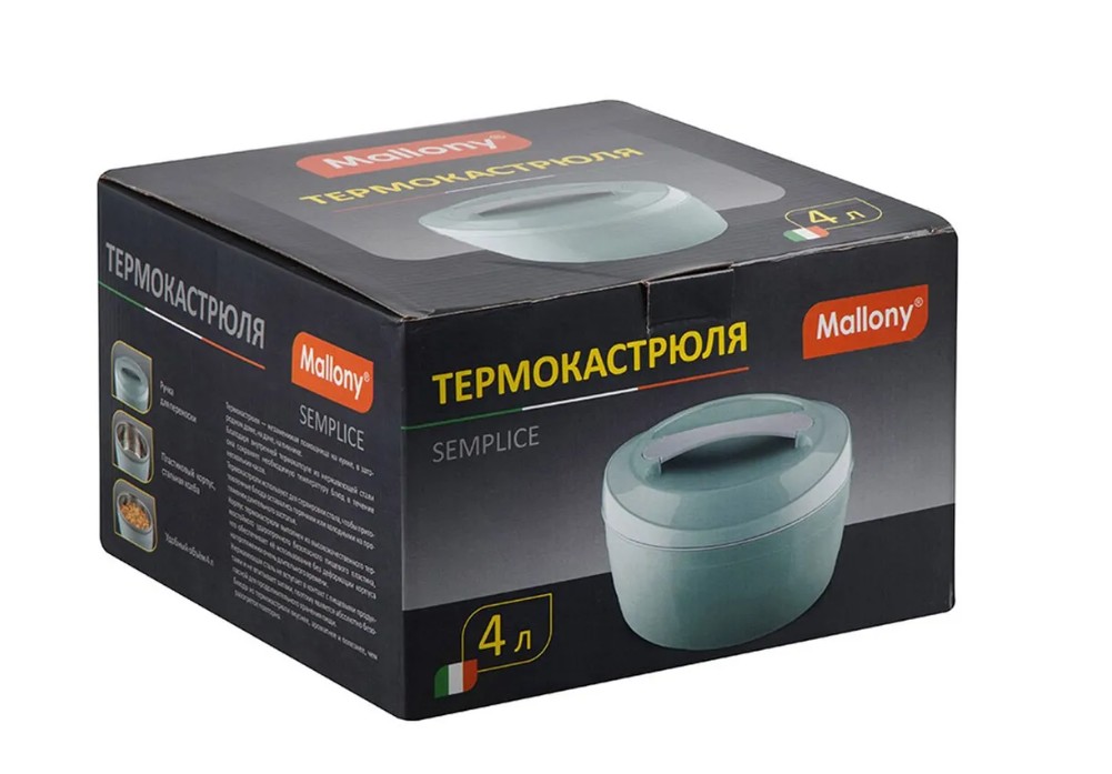 Термокастрюля — незаменимая помощница на кухне, в загородном доме, на даче, на пикнике. Благодаря внутренней термокапсуле из нержавеющей стали она сохраняет необходимую температуру блюд в течение нескольких часов. Термокастрюли используют для сервировки стола, чтобы приготовленные блюда оставались горячими или холодными на протяжении длительного застолья. Корпус термокастрюли выполнен из высококачественного термостойкого ударопрочного безопасного пищевого пластика, что обеспечивает ее использование без деформации корпуса на протяжении очень длительного времени. Нержавеющая сталь не вступает в контакт с пищевыми продуктами и не впитывает запахи, поэтому является абсолютно безопасной для продолжительного хранения пищи. Блюдо из термокастрюли вкуснее, ароматнее и полезнее, чем разогретое повторно.