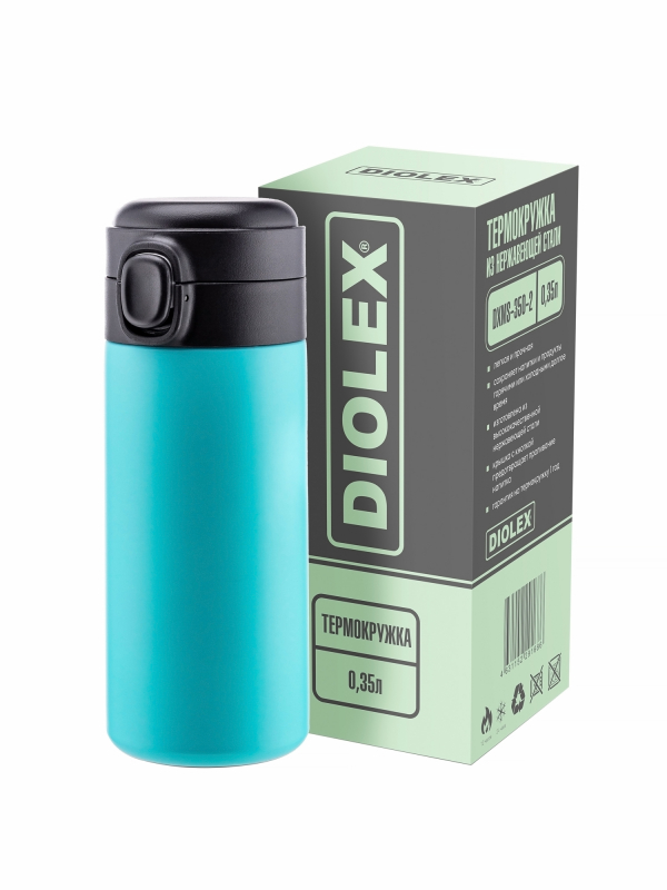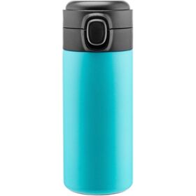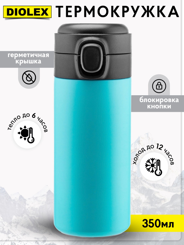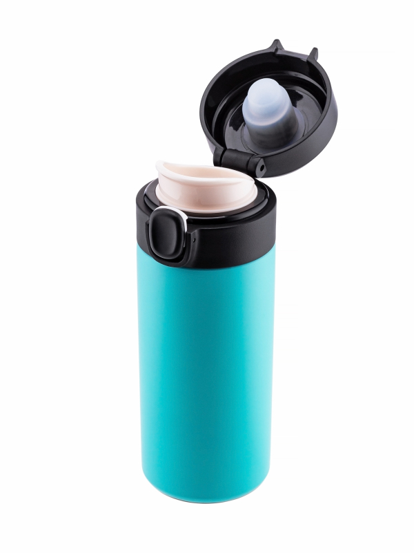 Кружка Термос снабжена откидывающейся крышкой с кнопкой, позволяющей с легкостью использовать одной рукой.. Так-же для защиты от непроизвольного нажатия кнопки, термокружка имеет специальный защитный замок-предохранитель .
