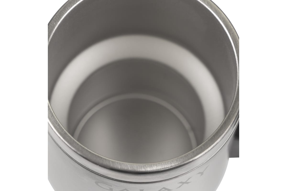 Автомобильная термокружка GALAXYLINE - незаменимый прибор в дорогу. Благодаря работе от прикуривателя, чай или бульон в термокружке всегда будет оставаться горячим. Удержание тепла обеспечивает корпус из высококачественной нержавеющей стали с двойными стенками. Между стенками образуется теплоизолирующий зазор (воздушная подушка), благодаря которой жидкостьостается горячей, а наружная стенка термокружки не нагревается. Обжечься о такой прибор нельзя. Дополнительным преимуществом автокружки GALAXYLINE является специальная конструкция крышки.