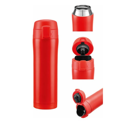 Термокружка обладает оптимальной формой для фиксации в держателе автомобиля, что позволяет использовать ее во время поездок. Термокружка снабжена откидывающейся крышкой с кнопкой, позволяющей с легкостью использовать ее одной рукой. Также, для защиты от непроизвольного нажатия кнопки, кружка имеет специальный защитный замок-предохранитель.