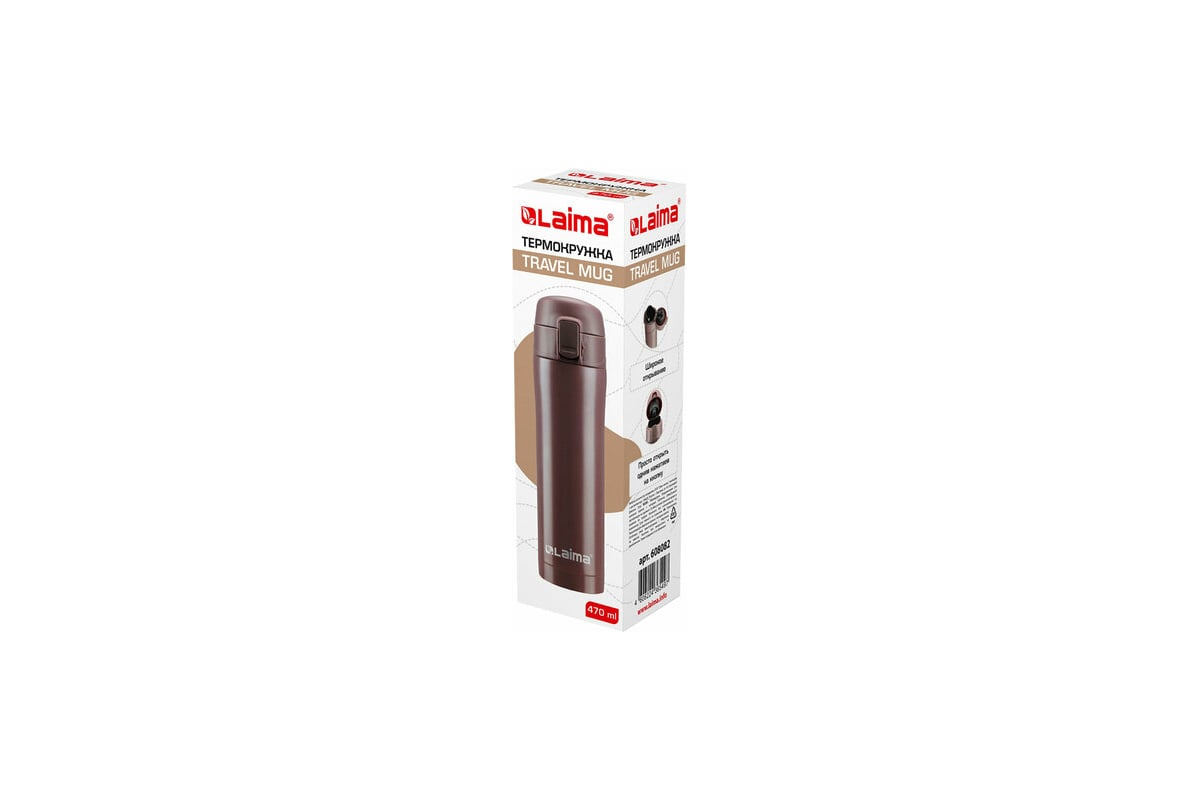 Термокружка LAIMA с двойной стальной стенкой изготовлена из нержавеющей стали марки 304 медицинского уровня. Сконструирована по вакуумной технологии.