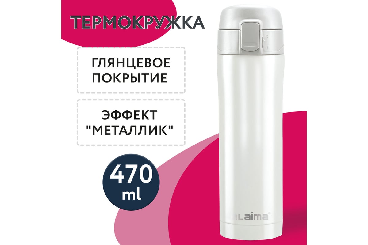 Термокружка LAIMA с двойной стальной стенкой изготовлена из нержавеющей стали марки 304 медицинского уровня. Сконструирована по вакуумной технологии.