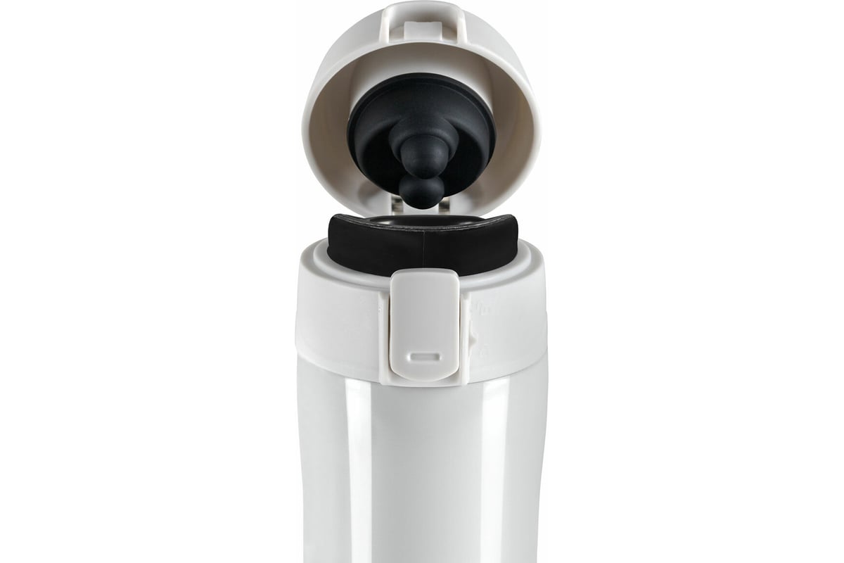 Термокружка обладает оптимальной формой для фиксации в держателе автомобиля, что позволяет использовать ее во время поездок. Термокружка снабжена откидывающейся крышкой с кнопкой, позволяющей с легкостью использовать ее одной рукой. Также, для защиты от непроизвольного нажатия кнопки, кружка имеет специальный защитный замок-предохранитель.