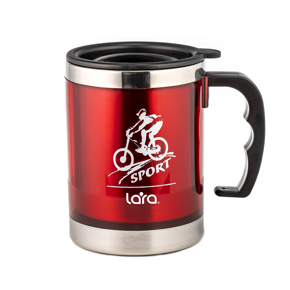 Удобная термокружка с двойными стенками LARA LR04-31 подходит для горячих и холодных напитков. Благодаря мягкому покрытию донышка кружка устойчиво стоит на столе и не царапает его поверхность. Конструкция крышки позволяет без труда снять ее с кружки. Ручка имеет анатомическую форму, повторяющую контур пальцев. Диаметр кружки оптимален для использования в салоне автомобиля. Колба изготовлена из нержавеющей стали.