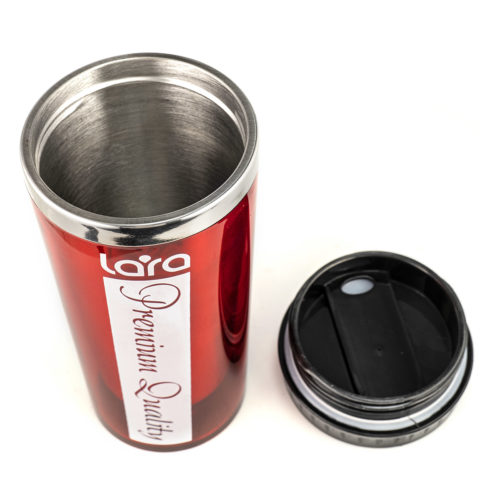 Автомобильная и прогулочная термокружка с двойными стенками для длительного сохранения тепла. Крышка имеет более высокий бортик со стороны отверстия для питья: так пить значительно удобнее. Объема кружки (500 мл) хватает на две порции чая или кофе. Колба из нержавеющей стали легко моется, а противоскользящая накладка на дне не даст кружке соскользнуть. По окружности крышки нанесены риски для облегчения откручивания. Подходит для горячих и холодных напитков.