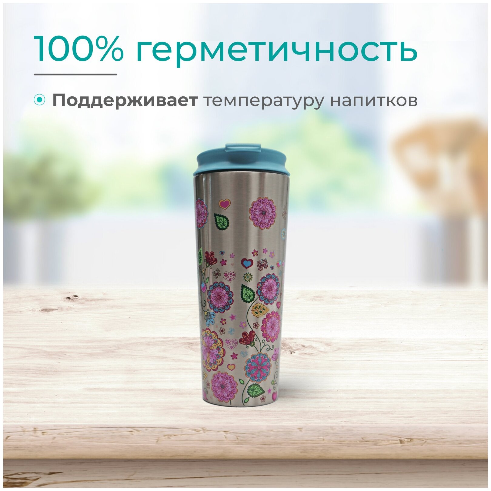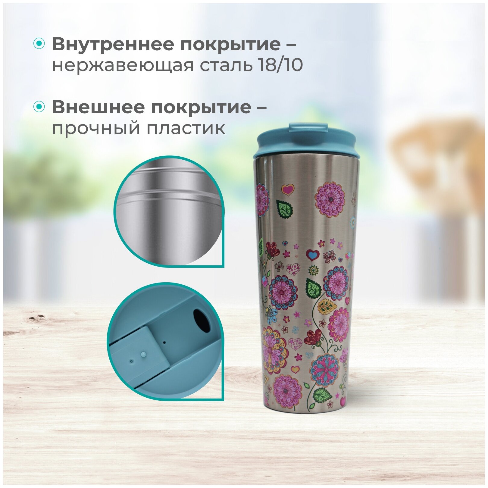 Термокружка выполнена в серебристом корпусе с нанесенными черными надписями, которые не сотрутся со временем. Колба из высокопрочной нержавеющей стали позволяет сохранить напитки горячими или холодными на протяжении 6 часов. Материал безопасен для здоровья — при нагреве не выделяются вредные вещества.