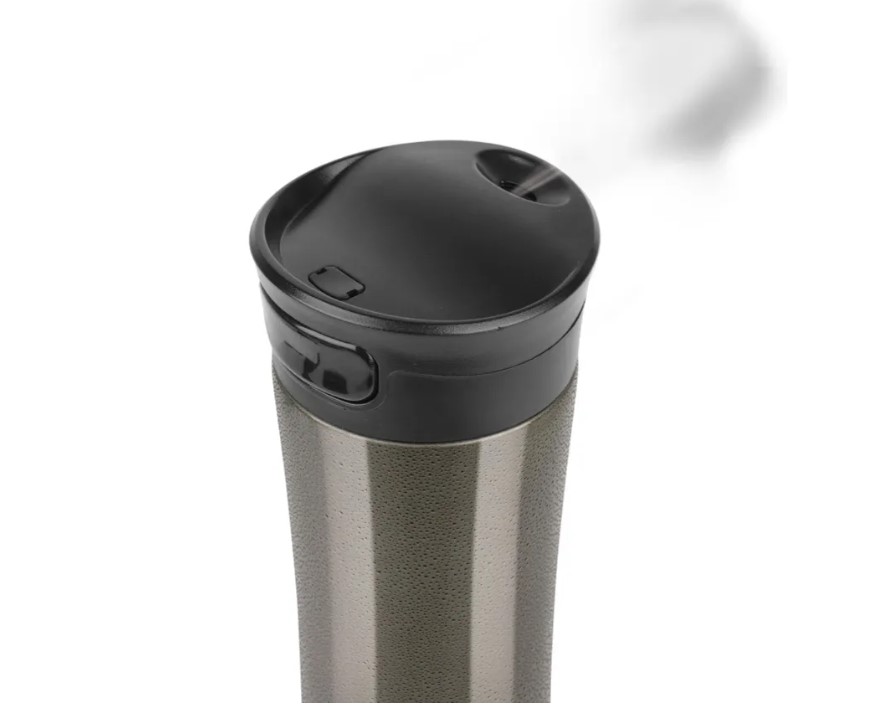 Термокружка 0,4 л Point Rondell RDS-1276Термокружка изготовлена из высококачественной нержавеющей стали 18/10. Двойные стенки из нержавеющей стали для лучшего сохранения температуры напитка. Внешнее декоративное покрытие с эффектном капель. Эргономичная система открывания: возможность использования одной рукой. Подходит для горячих и холодных напитков( кроме газированных ) Наполненное изделие храните в вертикальном положении. Не переворачивать! Не подходит для ПММ.
