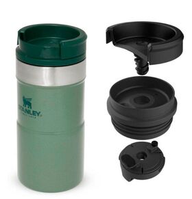 Термокружка 0,25L c корпусом и внутренней колбой из нержавеющей стали 18/8. Поворотная крышка фиксируется в трёх положениях: по часовой стрелке поворот направо – закрыть, налево против часовой стрелки – открыть, чтобы попить, поворот налево после открытого положения – разобрать крышку для мытья