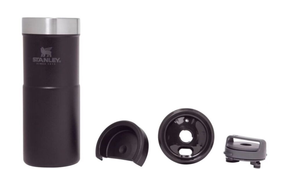 Термокружка 0,35L c корпусом и внутренней колбой из нержавеющей стали 18/8. Поворотная крышка фиксируется в трёх положениях: по часовой стрелке поворот направо – закрыть, налево против часовой стрелки – открыть, чтобы попить, поворот налево после открытого положения – разобрать крышку для мытья