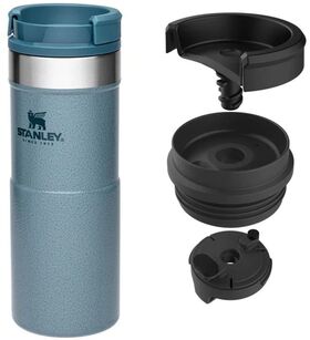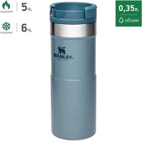 Термокружка 0,35L c корпусом и внутренней колбой из нержавеющей стали 18/8. Поворотная крышка фиксируется в трёх положениях: по часовой стрелке поворот направо – закрыть, налево против часовой стрелки – открыть, чтобы попить, поворот налево после открытого положения – разобрать крышку для мытья