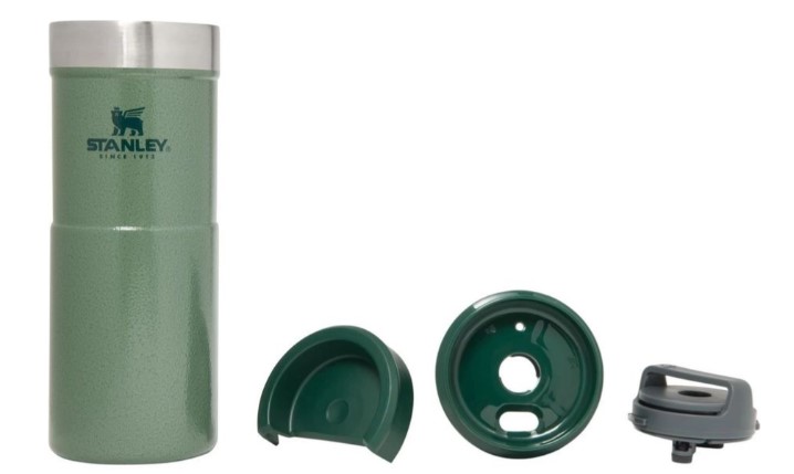 Термокружка 0,35L c корпусом и внутренней колбой из нержавеющей стали 18/8. Поворотная крышка фиксируется в трёх положениях: по часовой стрелке поворот направо – закрыть, налево против часовой стрелки – открыть, чтобы попить, поворот налево после открытого положения – разобрать крышку для мытья