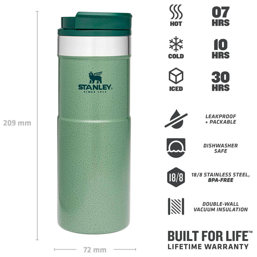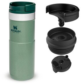 Термокружка 0,47L c корпусом и внутренней колбой из нержавеющей стали 18/8. Поворотная крышка фиксируется в трёх положениях: по часовой стрелке поворот направо – закрыть, налево против часовой стрелки – открыть, чтобы попить, поворот налево после открытого положения – разобрать крышку для мытья