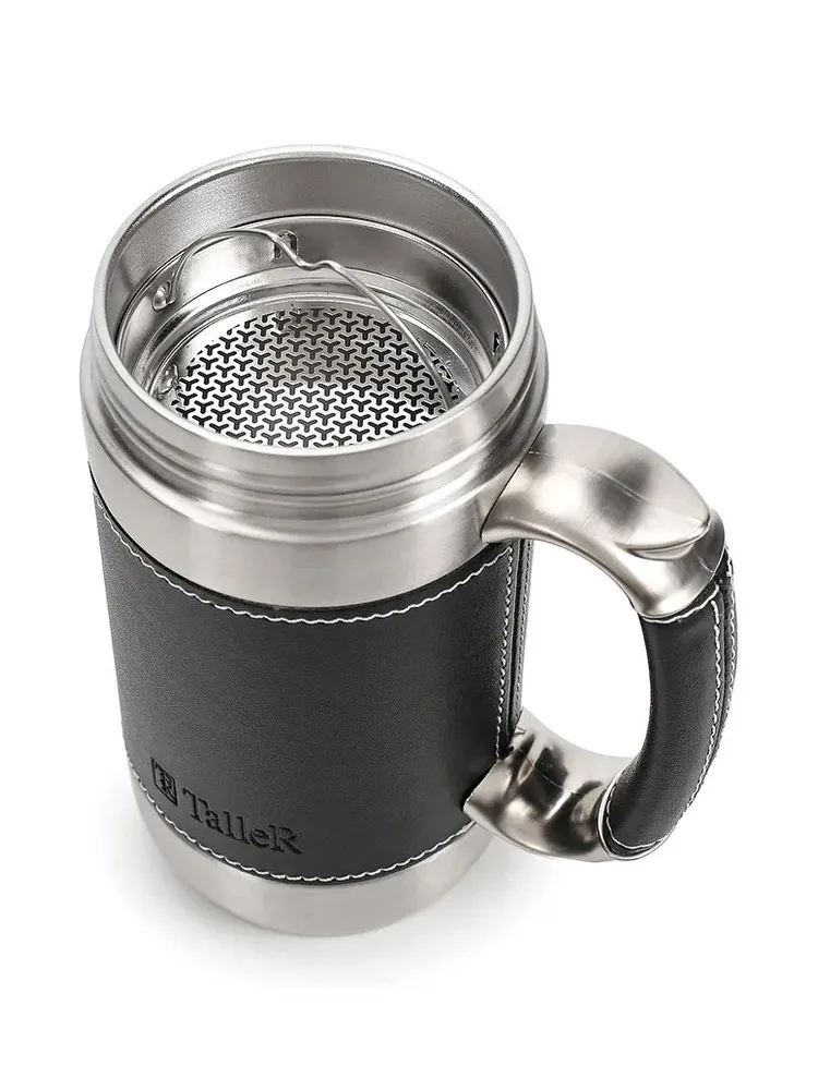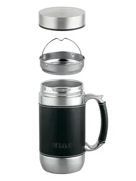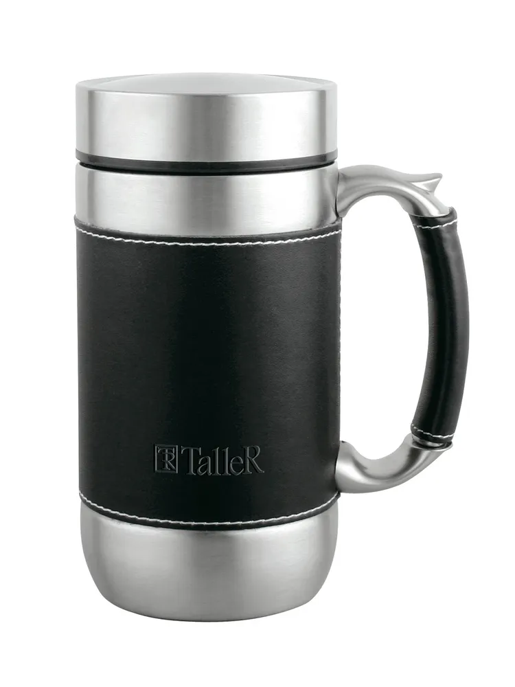 Кружка покрыта экокожей, которая приятна на ощупь и препятствует скольжению.