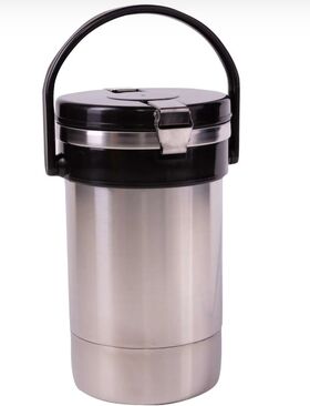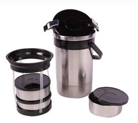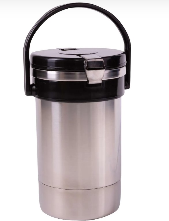Трёхсекционный термос «Экспресс» предназначен для хранения блюд в тёплом виде для обедов на рабочем месте или в поездке. Он включает три стальных контейнера с пластиковыми крышками по 600 мл каждый. С ними вы обеспечите себе полноценный приём пищи из разных блюд или запас завтрак-обед-ужин. Удобная широкая горловина позволяет легко доставать и погружать контейнеры в двойную металлическую колбу. Крышка термоса имеет два замка для герметичного соединения с ёмкостью. Также термос оснащён удобной ручкой для переноски. Товар изготовлен из высококачественной нержавейки. Металлическая колба устойчива к вибрациям и лёгким ударам. Контейнеры легко моются, не впитывают запахи.