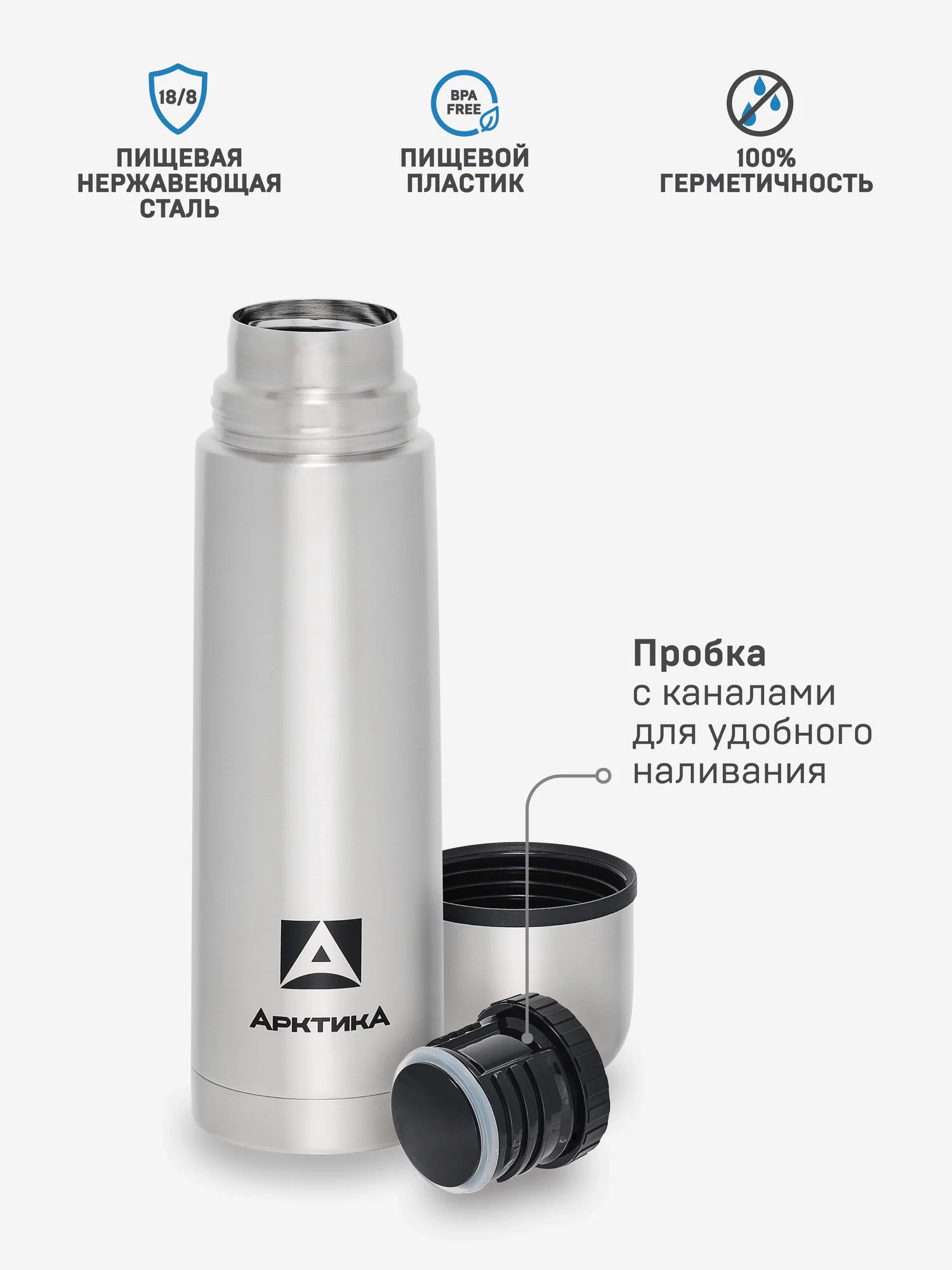 термос -1шт; крышка-чашка -1шт; пробка с каналами - 1шт;