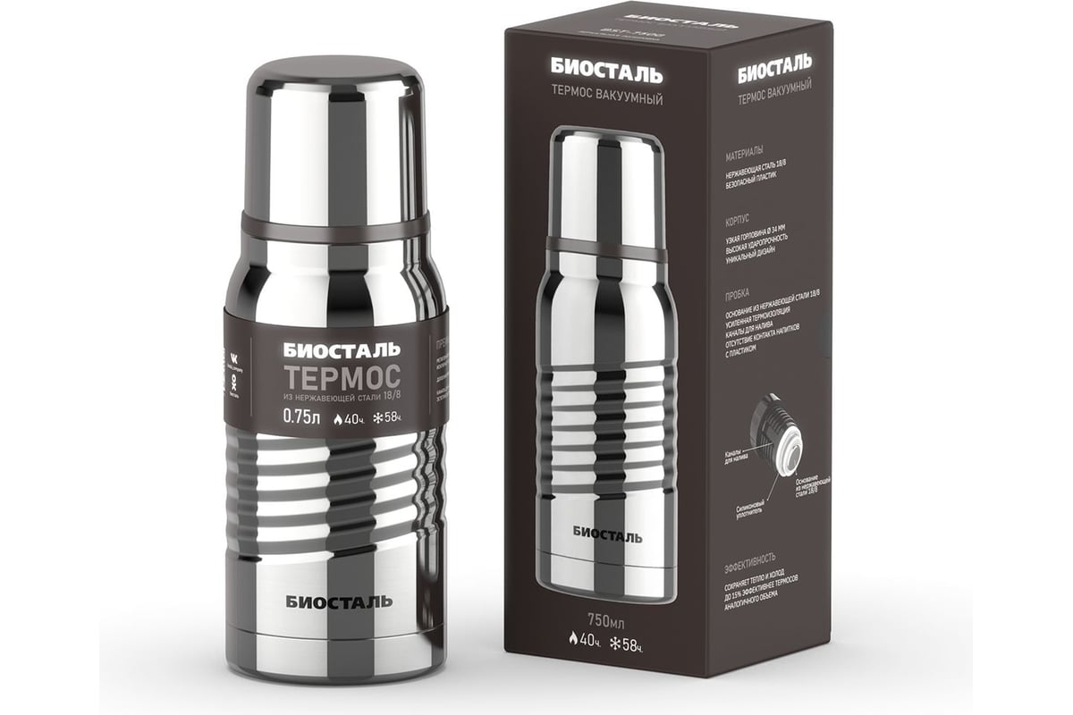 Термосы BST-G с зеркальной полировкой корпуса и максимальными температурными показателями. Все металлические детали термоса изготовлены из нержавеющей стали 18/8 (AISI 304).