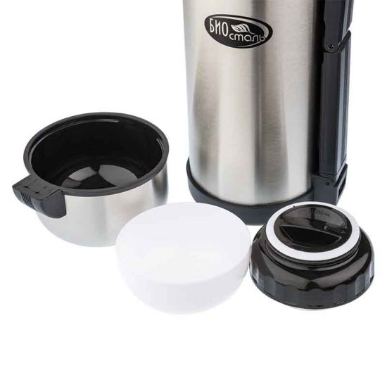 Универсальный пищевой термос NG-1800-1 ТМ «БИОСТАЛЬ» относится к классической серии. Термосы этой серии, являющейся лидером продаж, просты в использовании, экономичны и многофункциональны. Универсальный термос выполняет функции термоса для еды (первого или второго) и термоса для напитков (кофе, чая). Это достигается благодаря специальной универсальной пробке, которая изготовлена из прочного пластика, легко разбирается для мытья и, обладая дополнительной теплоизоляцией, позволяет термосу дольше хранить тепло.