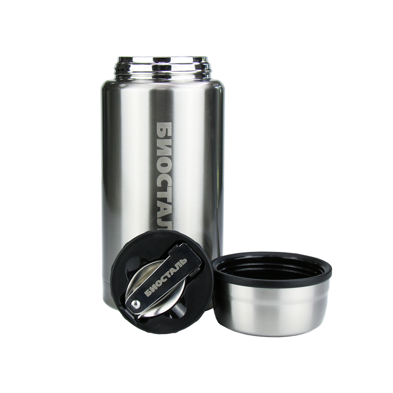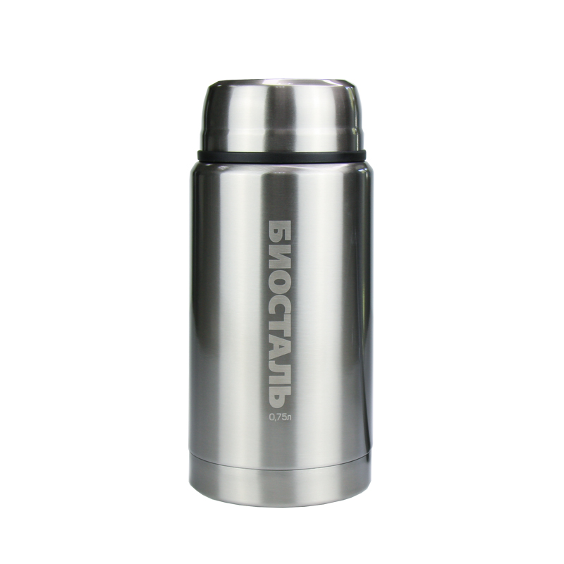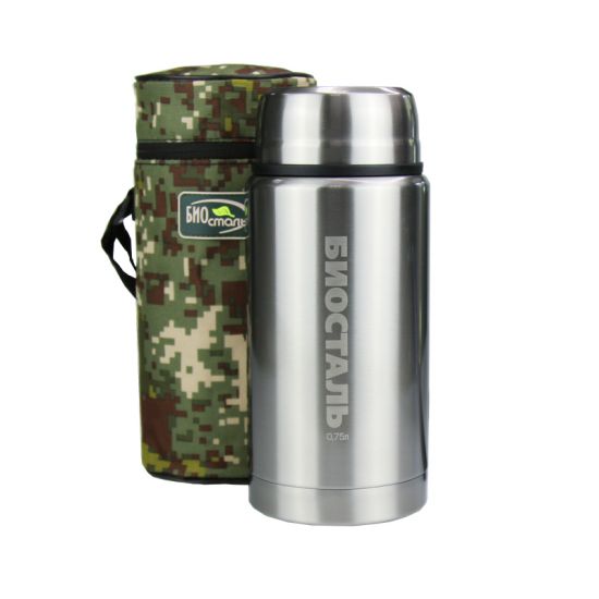 Термос с широким горлом для горячей и холодной пищи, для фруктов и льда. В комплекте есть складная ложка и термочехол. Пробка имеет специальную кнопку для сброса пара.