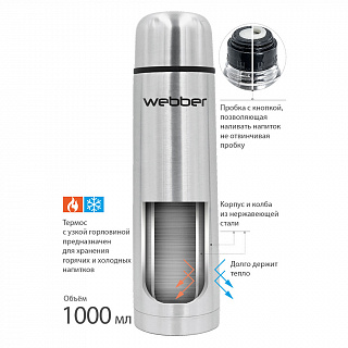 Термос с узкой горловиной предназначен для хранения горячих и холодных напитков