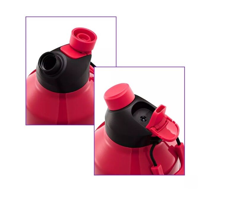 На крышке термоса есть отверстие для налива содержимого из термоса, закрывающееся крышечкой. Также из термоса можно пить напрямую из трубки для питья. Для удобной переноски термоса на крышке предусмотрена специальная петля для переноски.
