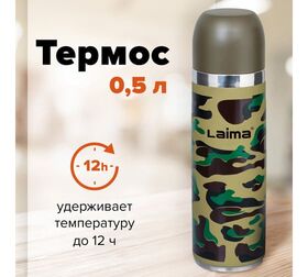 Термос LAIMA с узким горлом предназначен для хранения горячих и холодных напитков.